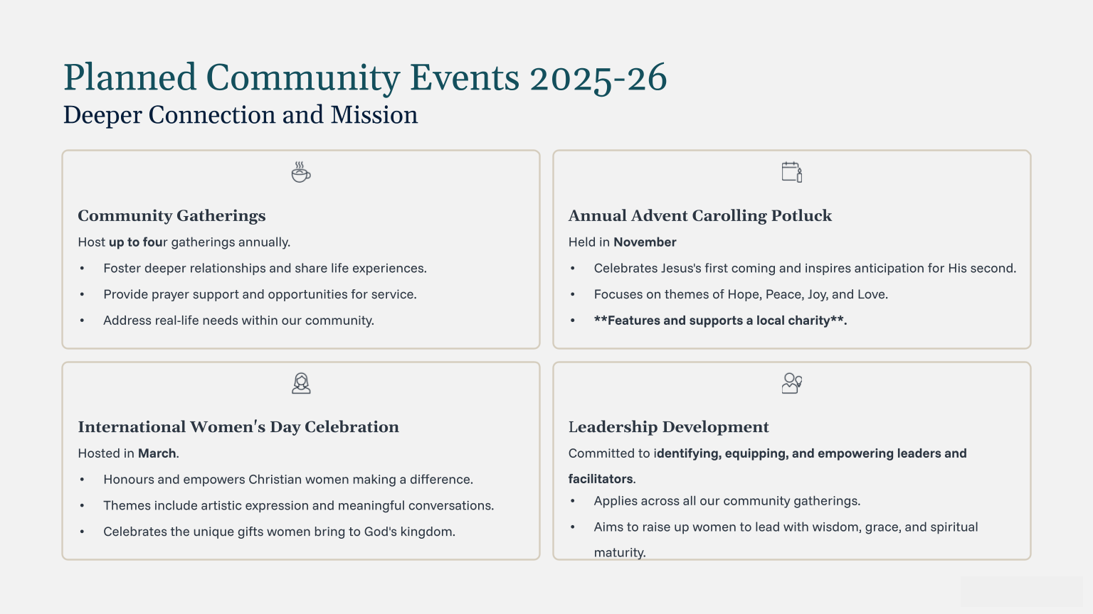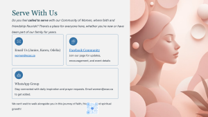 Women’s Group GET CONNECTED Women’s Group Timothy Youth Fellowship Summit Fellowship Titus Fellowship